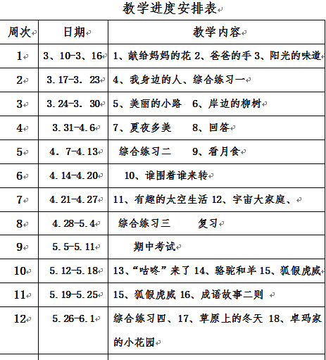 小学三年级下学期汉语文教案