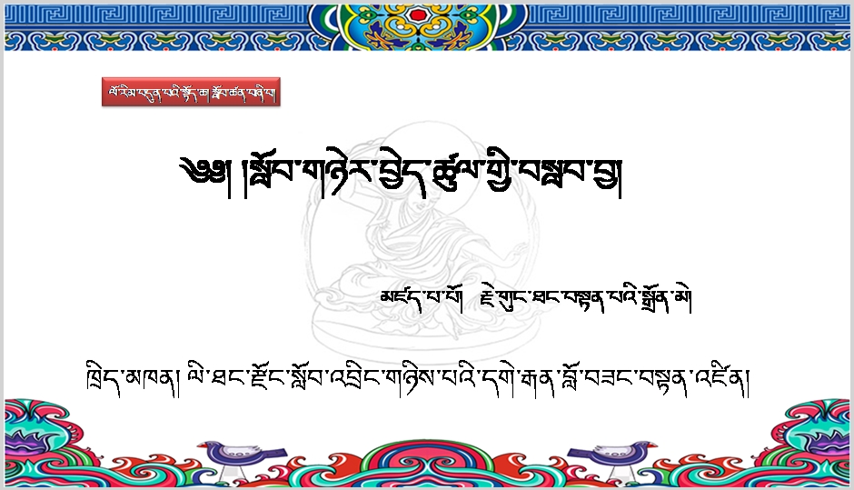 高一年级上学期必修一《ལོ་ཙཱ་བ་རིམ་བྱོན་གྱིས་ལེགས་སྦྱར་སྐད་བོད་སྐད་དུ་ཇི་ལྟར་བསྒྱུར་ཚུལ།》课件