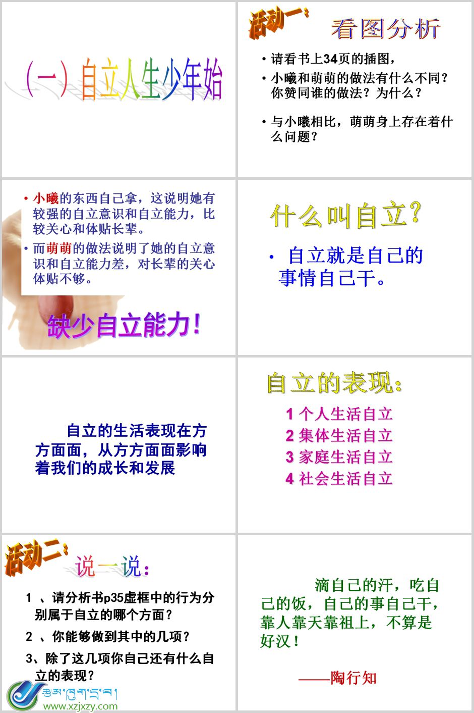 教学课件:初中一年级下学期思想品德《走向自立人生》课件信息编号:238 发布者:巴蒂 发布时间:2015-04-11 关注: