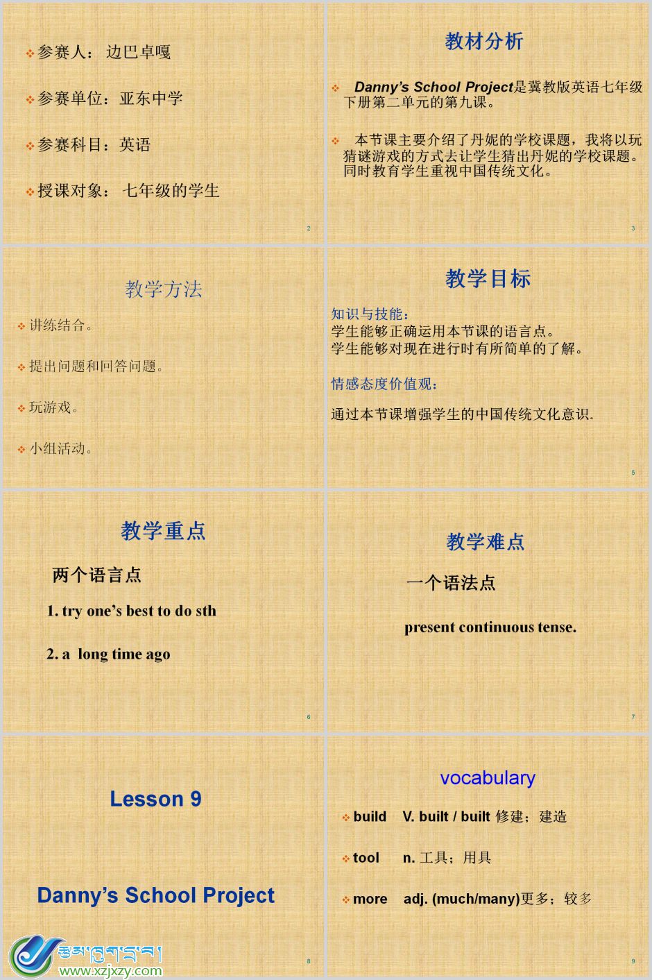 教学课件:[参赛作品]冀教版英语七年级下册《Lesson 9Danny’s School Project 》亚东县中学边巴卓嘎