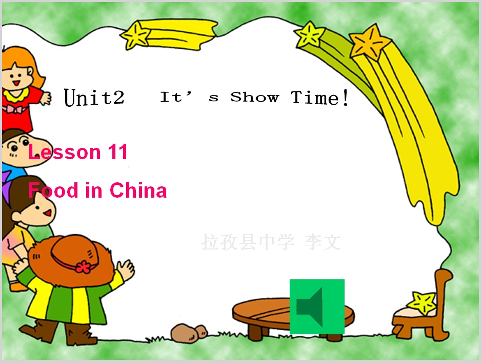 教学课件:[参赛作品]七年级下学期英语Unit2 It’s Show Time! Lesson 11《Food in China》课件拉孜县中学 李文 三等奖