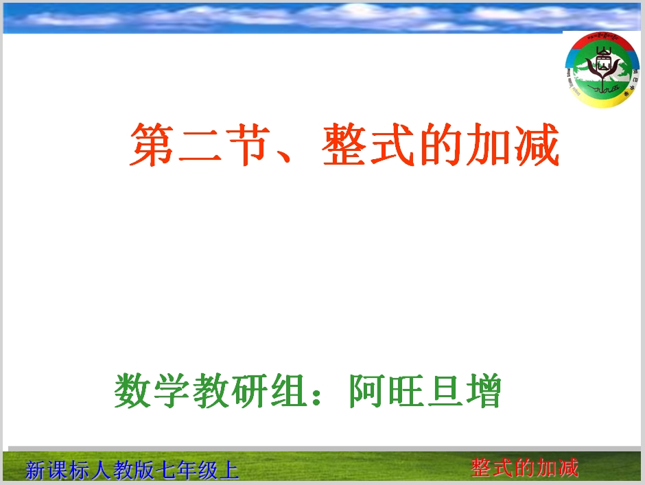 教学课件:初一上学期数学《第二节、整式的加减》课件