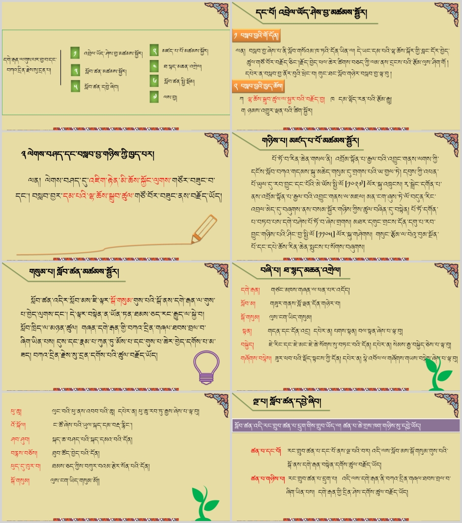教学课件:七年级上学期藏语文上册第六课《༦ དགེ་རྒན་ལ་གུས་པར་བྱ་བ་དང་བཀའ་དནརིན་རྗེས་སུ་དྲན་པ།》课件PPT