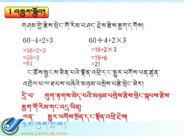 教学课件:阿里革吉县盐湖乡中心小学四年级下学期数学《有括号的四则混合运算》课件
