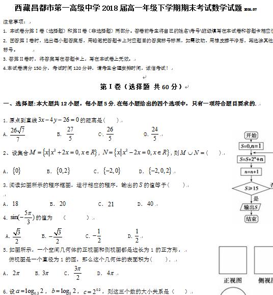 2016-08-22西藏昌都市第一高级中学2018届高一年级下学期期末考试数学试题