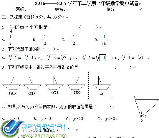 科目:数学下册