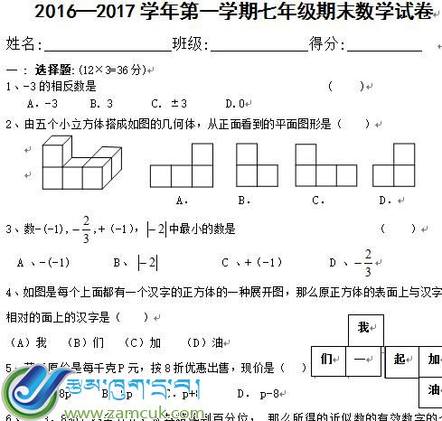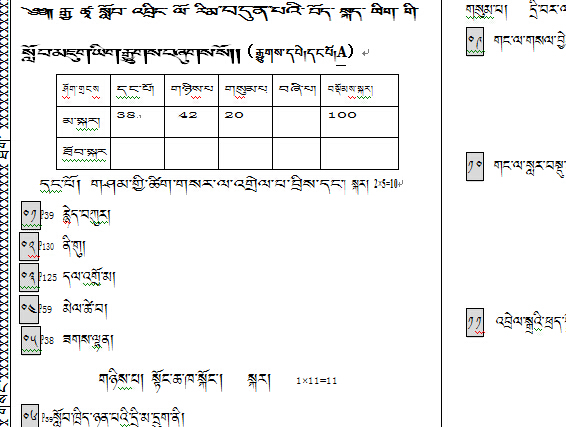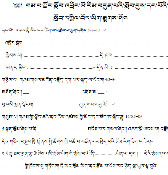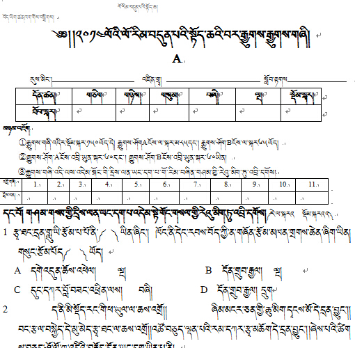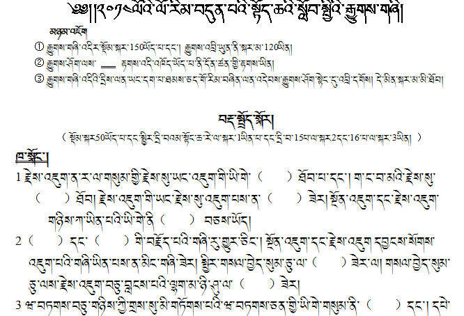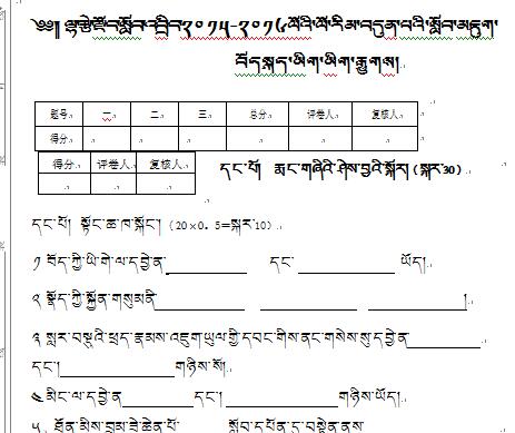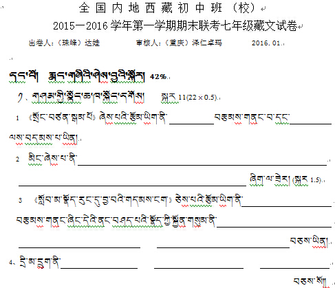 2016-01-08全国内地西藏初中班(校)2014-2015学年上学期七年级藏语文期末联考试卷