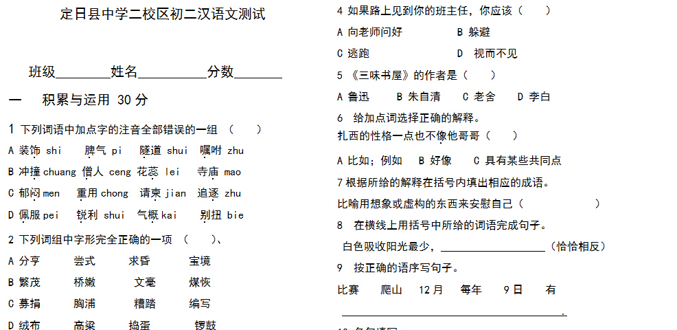 类型:月考试卷