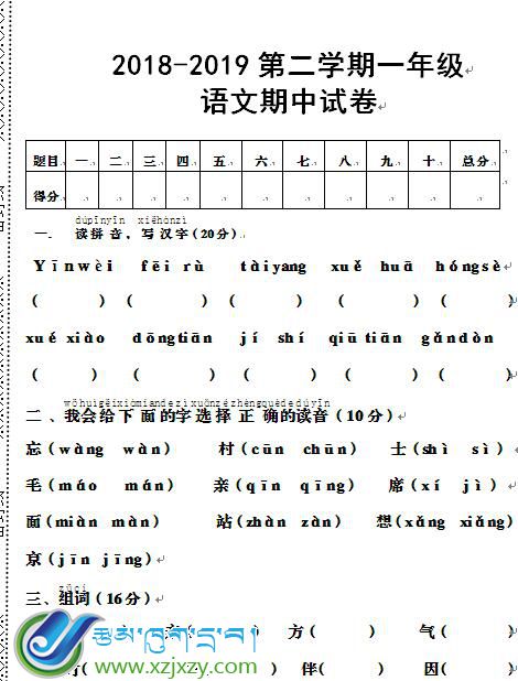 科目:藏语下册