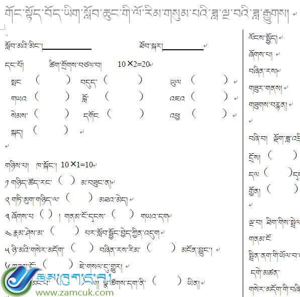 科目:藏语下册