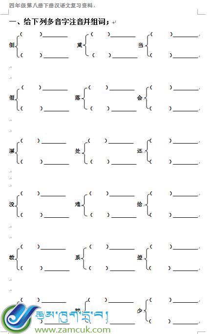 2015-07-08四年级下学期藏语文复习提纲ལོ་རིམ་བཞི་པའི་བསྐྱར་སྦྱོང་གནད་བསྡུས།