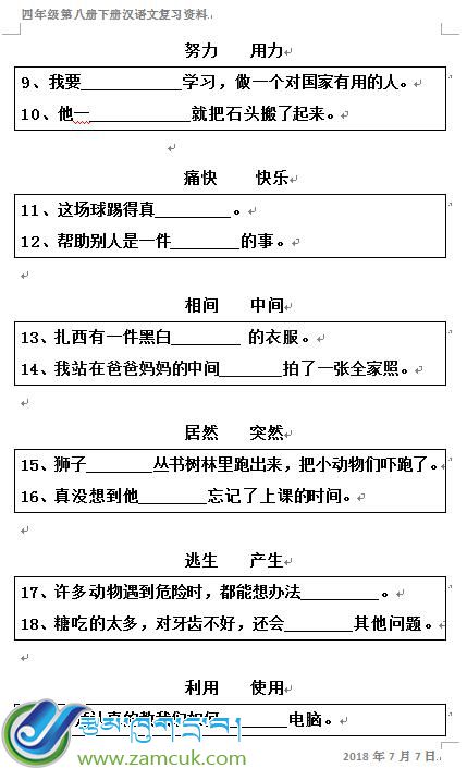 学期复习:定结县日屋镇中心小学四年级下学期汉语文第八册复习资料信息编号:371 发布者:JHNY 发布时间:2018-07-31 关注: