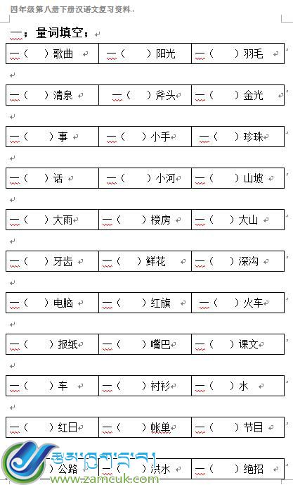 免费发布信息四年级复习汉语下册学期复习