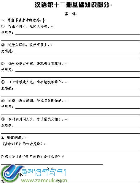 科目:藏语下册