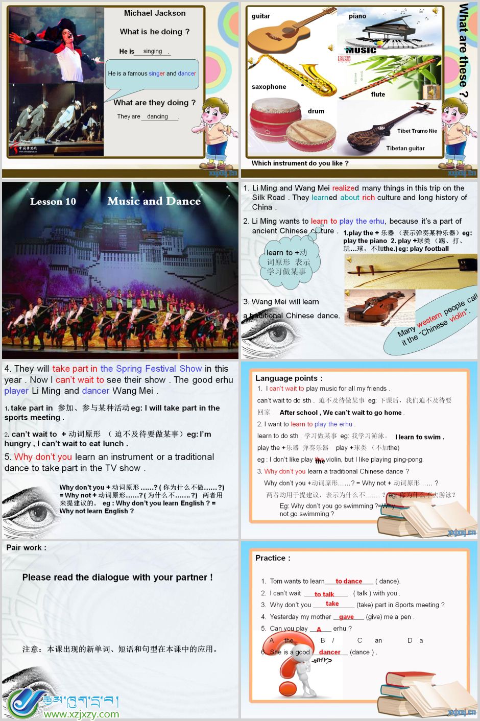 教学课件:[参赛作品]七年级下学期英语《Lesson 10 Music and Dance》课件(昂仁中学 平措)