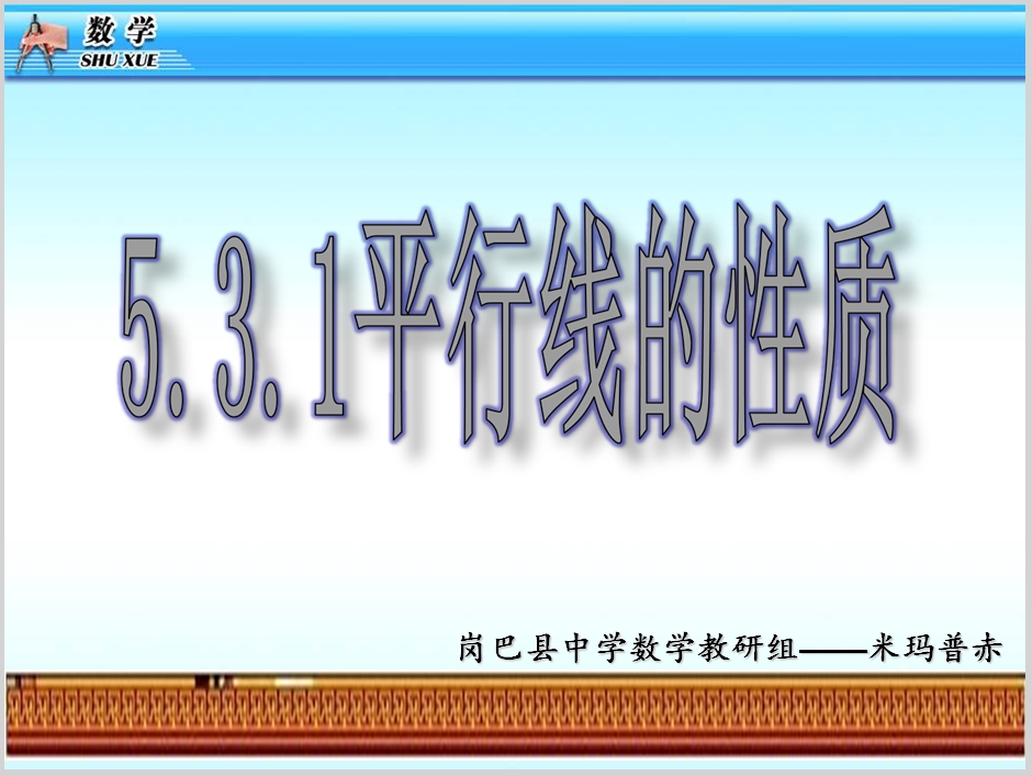 课件模板:[参赛作品]初一年级下学期数学《探索平行线的性质》课件 岗巴县中学米玛普赤
