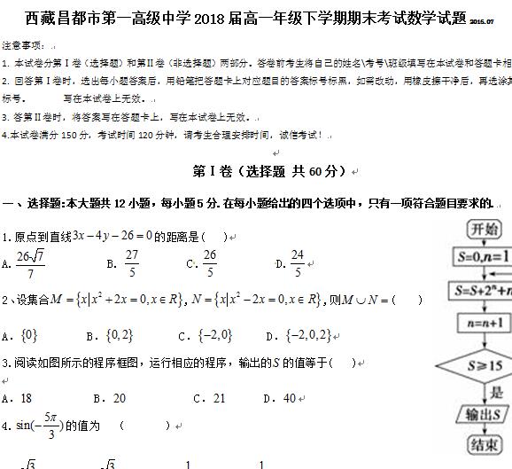 2016-08-22西藏昌都市第一高级中学2018届高一年级下学期期末考试数学试题