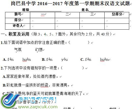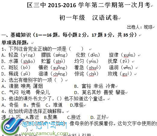 类型:月考试卷