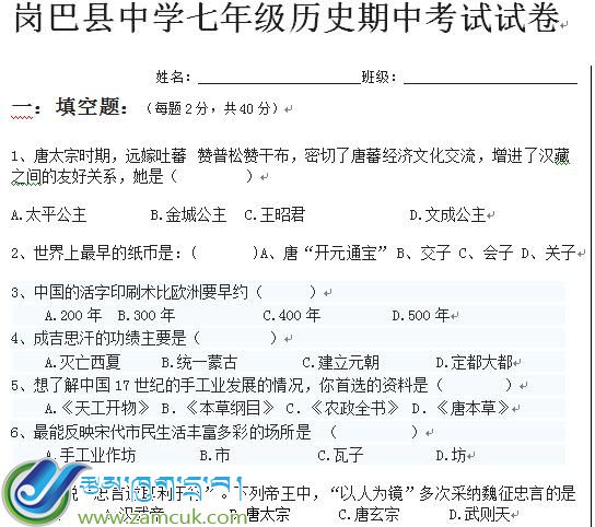 科目:历史下册