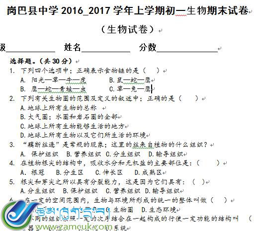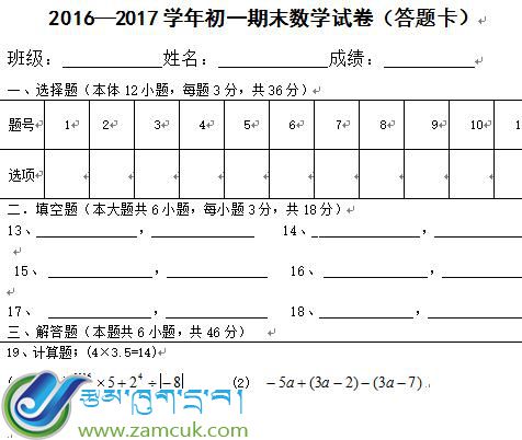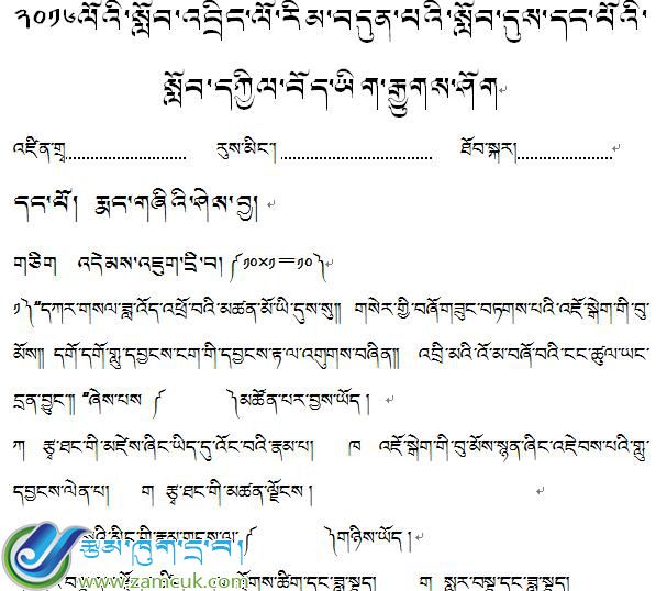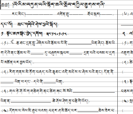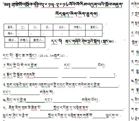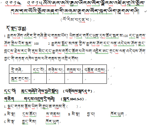2016-01-08全国内地西藏初中班(校)2014-2015学年上学期七年级藏语文期末联考试卷