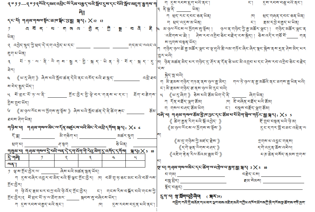 科目:藏语下册