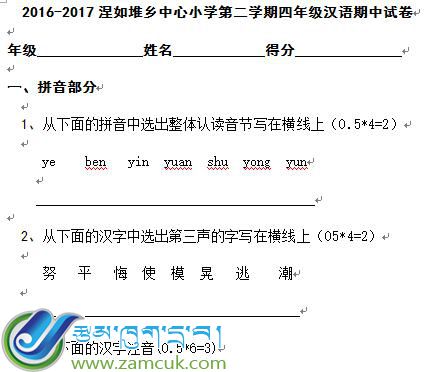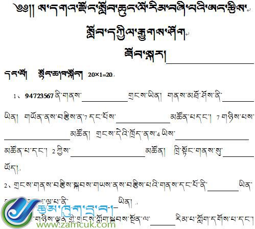 科目:藏语下册