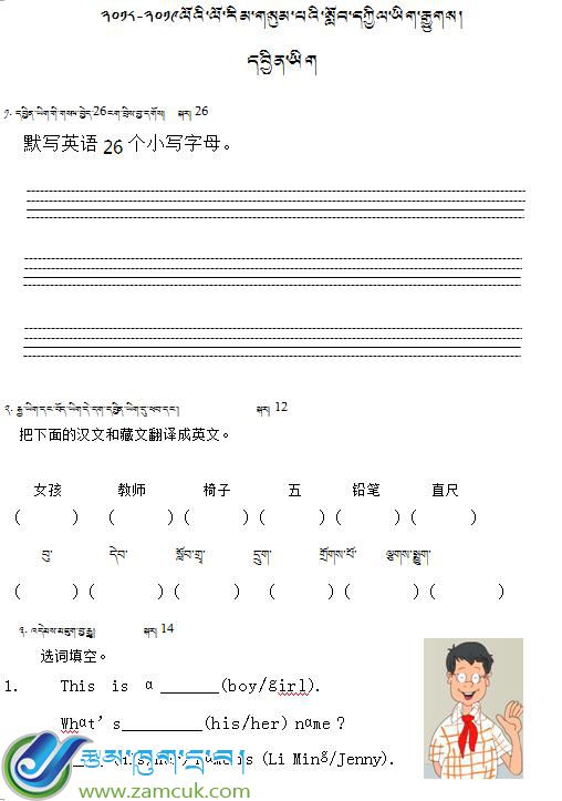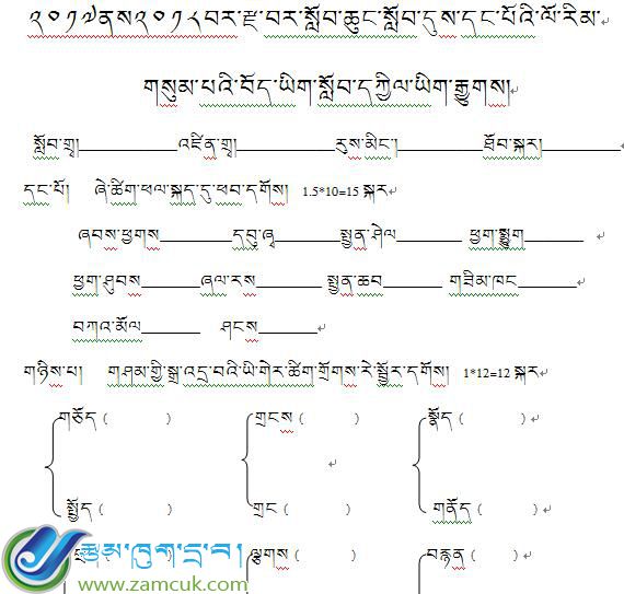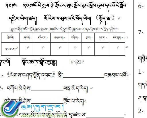 科目:藏语下册