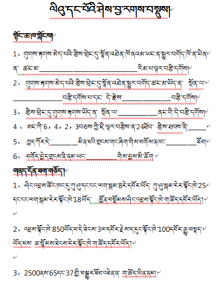 2015-07-08四年级下学期藏语文复习提纲ལོ་རིམ་བཞི་པའི་བསྐྱར་སྦྱོང་གནད་བསྡུས།